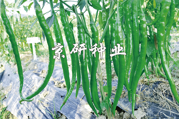 新育成F1,節節有果,果實為長粗線椒,果長28-35厘米,果寬1.5-1.8厘米,單果重35-40克。果實光亮,果形美觀順直,青熟果淺綠色,紅果鮮亮,辣味香濃,口感好,品質極佳,耐貯運,商品性好。耐熱、耐濕,耐青枯病和疫病。持續收獲期長,綠紅果兼收,適宜多種加工,既可鮮食,也可做辣椒醬。豐產、適于南北方露地或保護地種植。