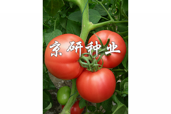 最新育成并開始示范推廣的抗TYLCV、抗線蟲(Mi)番茄新品種。無限生長型。主莖7-9片葉(以8片葉為主)著生第一花序,中熟顯早。生長勢較強、節間顯長,果實圓和高圓。果個大、產量高,最大果可達500g以上,平均單果200g以上。未成熟果有綠果肩,成熟果粉紅亮澤,果肉硬度高、耐裂果性好。適合春秋大棚和秋延遲溫室種植。已在北京、河北、河南和山東等地試種、示范成功。
